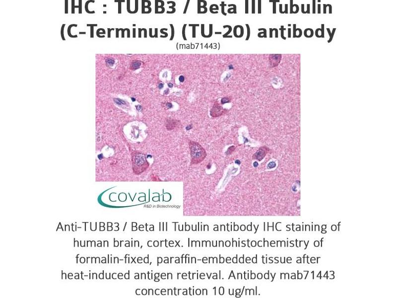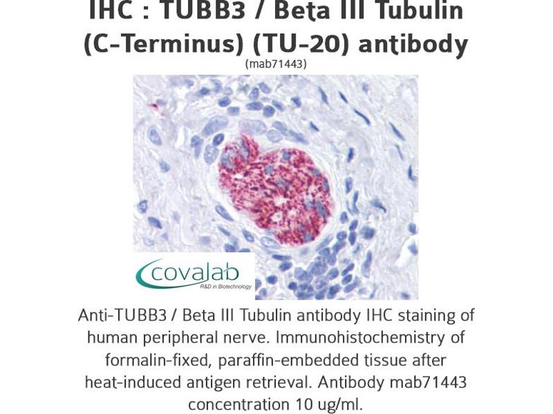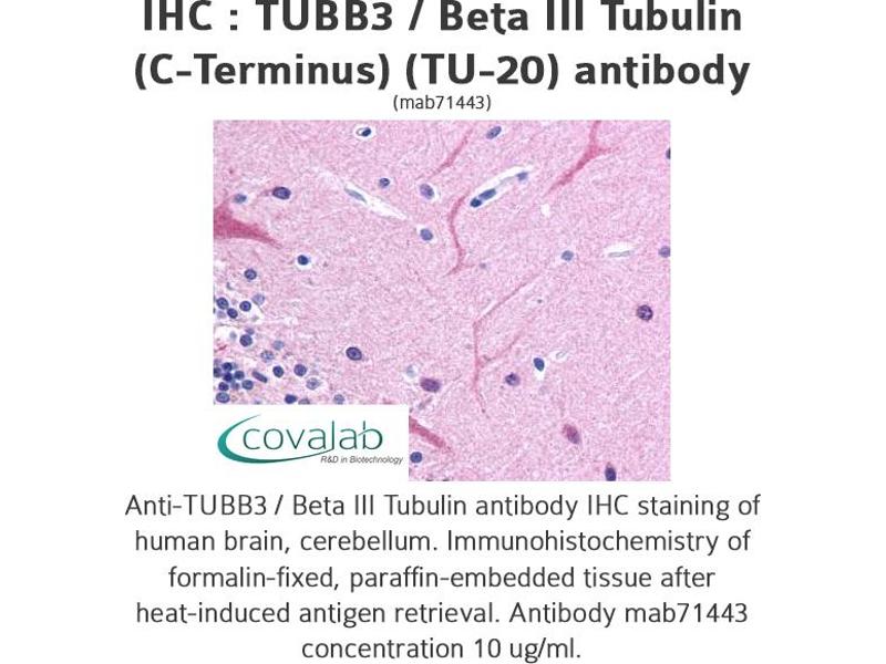 - Reacts with the C-terminus part of human TUBB3 / Beta III Tubulin