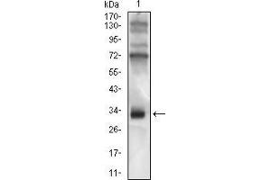 - Purified antibody in PBS with 0.05 % sodium azide.