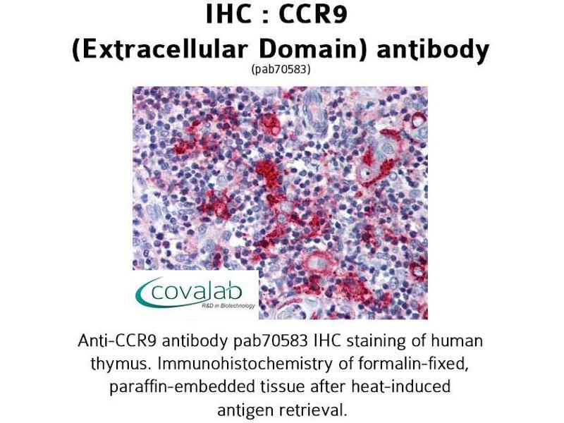 - Synthetic 19 amino acid peptide from 2nd extracellular domain of human CCR9. Percent identity with other species by BLAST analysis: Human (100%), Gorilla (100%), Gibbon (100%), Monkey (95%), Horse (89%), Pig (89%), Bovine (84%).