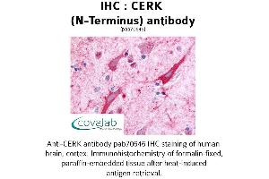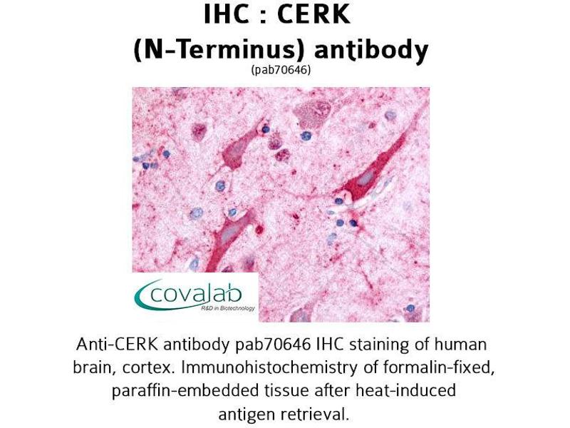 - Synthetic 20 amino acid peptide from N-terminal extracellular domain of human CERK. Percent identity with other species by BLAST analysis: Human (100%), Gorilla (90%), Gibbon (90%), Monkey (90%), Marmoset (90%), Dog (85%), Panda (85%), Bovine (80%)