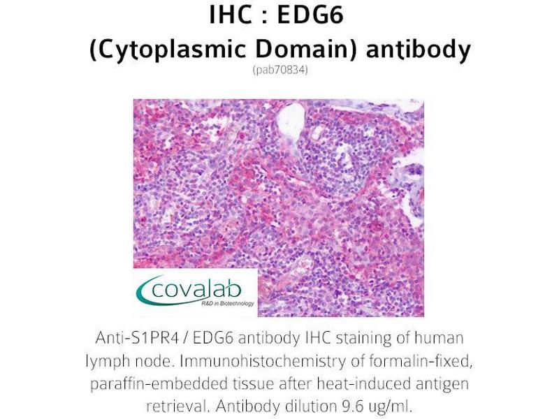 - Synthetic 20 amino acid peptide from 2nd cytoplasmic domain of human S1PR4 / EDG6. Percent identity with other species by BLAST analysis: Human (100%), Gorilla (100%), Monkey (95%), Marmoset (95%), Mouse (95%), Rat (95%), Hamster (95%), Bovine (85%) ...