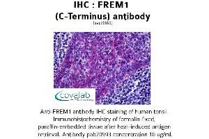 - FREM1 antibody was raised against a 15 amino acid peptide near the carboxy terminus of human FREM1.