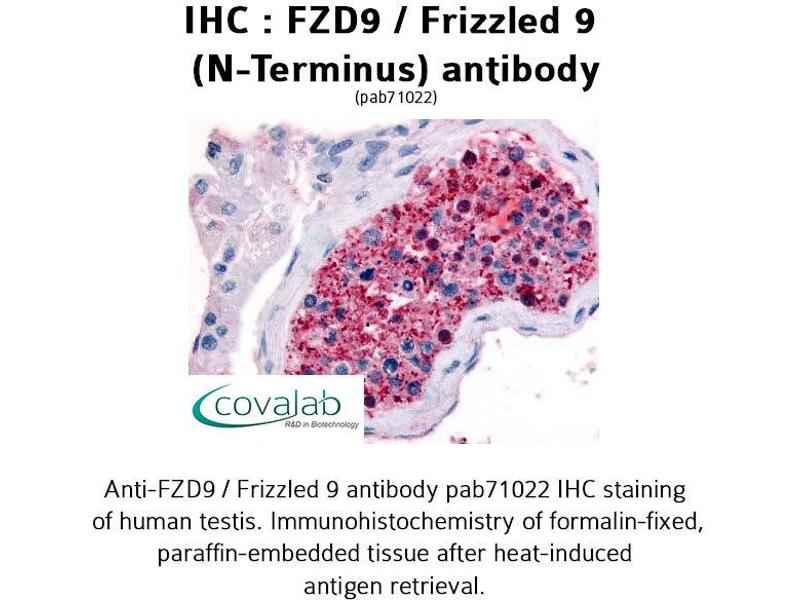 - Synthetic 17 amino acid peptide from N-terminal extracellular domain of human FZD9 / Frizzled 9. Percent identity with other species by BLAST analysis: Human (100%), Gibbon (100%), Mouse (100%), Rat (100%), Dog (100%), Bovine (100%), Panda (100%)