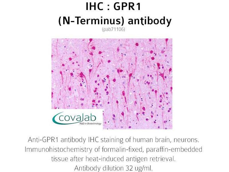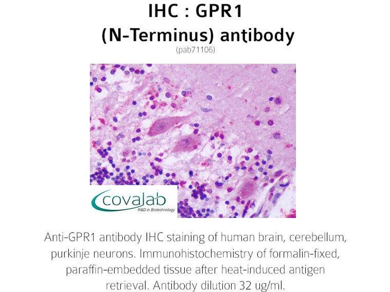 - Synthetic 19 amino acid peptide from N-terminal extracellular domain of human GPR1. Percent identity with other species by BLAST analysis: Human (100%), Gorilla (100%), Gibbon (100%), Monkey (95%), Marmoset (95%), Hamster (84%), Dog (84%).