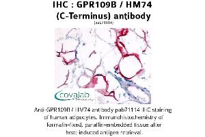 The Rabbit Polyclonal anti-GPR109B antibody (ABIN1734900) specifically detects GPR109B in IHC (p).