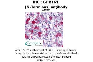 - Synthetic 18 amino acid peptide from N-terminal extracellular domain of human GPR161. Percent identity with other species by BLAST analysis: Human (100%), Gorilla (100%), Gibbon (100%), Monkey (100%), Marmoset (94%), Horse (89%), Hamster (83%)