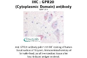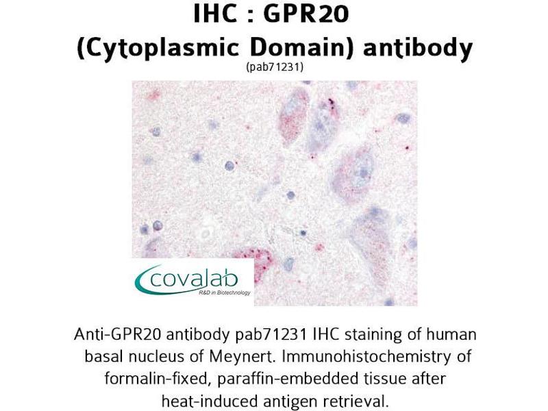 - Synthetic 18 amino acid peptide from 3rd cytoplasmic domain of human GPR20. Percent identity with other species by BLAST analysis: Human (100%), Bovine (100%), Gorilla (94%), Monkey (94%), Marmoset (94%), Mouse (94%), Horse (94%), Rabbit (94%)