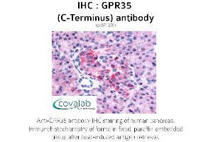 - Synthetic 19 amino acid peptide from C-terminus of human GPR35. Percent identity with other species by BLAST analysis: Human (95%), Gorilla (95%), Gibbon (95%), Monkey (89%), Marmoset (84%), Bat (84%).