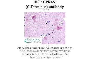 - Synthetic 17 amino acid peptide from C-terminus of human GPR45. Percent identity with other species by BLAST analysis: Human (100%), Chimpanzee (100%), Gorilla (100%), Orangutan (100%), Gibbon (100%), Monkey (100%), Marmoset (100%), Bovine (100%)