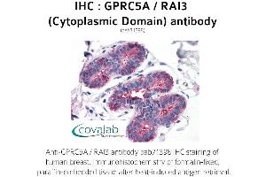 - Synthetic 16 amino acid peptide from 1st cytoplasmic domain of human GPRC5A / RAI3. Percent identity with other species by BLAST analysis: Human (100%), Gorilla (100%), Gibbon (94%), Monkey (94%), Bat (94%), Dog (94%), Panda (94%), Marmoset (88%)