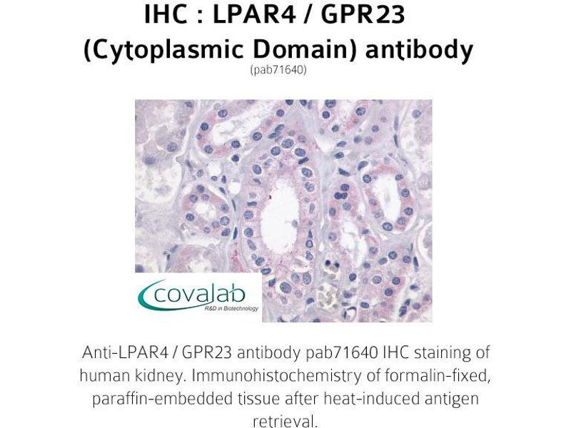 - Synthetic 17 amino acid peptide from 3rd cytoplasmic domain of human LPAR4 / GPR23. Percent identity with other species by BLAST analysis: Human (100%), Gorilla (100%), Gibbon (100%), Monkey (100%), Marmoset (100%), Mouse (100%), Rat (100%)