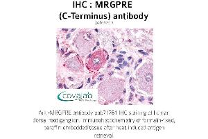 - Synthetic 17 amino acid peptide from C-terminus of human MRGPRE. Percent identity with other species by BLAST analysis: Human (100%), Gorilla (100%), Gibbon (100%), Monkey (94%), Marmoset (94%), Mouse (82%), Rat (82%).