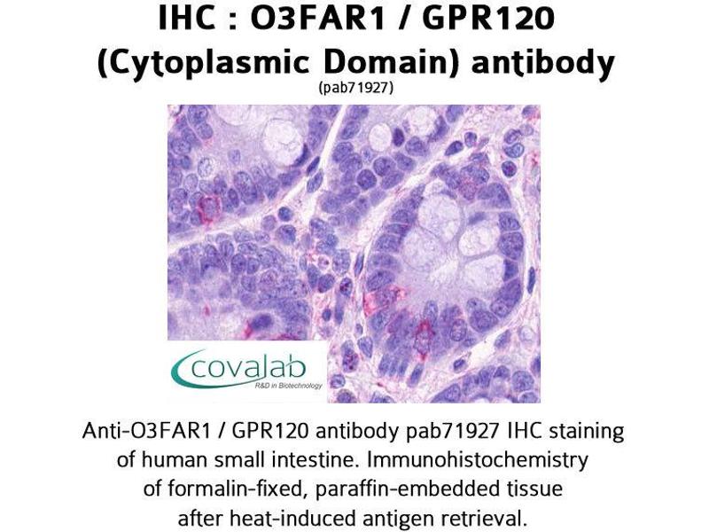 - Synthetic 18 amino acid peptide from 3rd cytoplasmic domain of human O3FAR1 / GPR120. Percent identity with other species by BLAST analysis: Human (94%), Gorilla (94%), Gibbon (94%), Monkey (94%), Bat (94%), Elephant (94%), Rabbit (94%), Marmoset (89%)