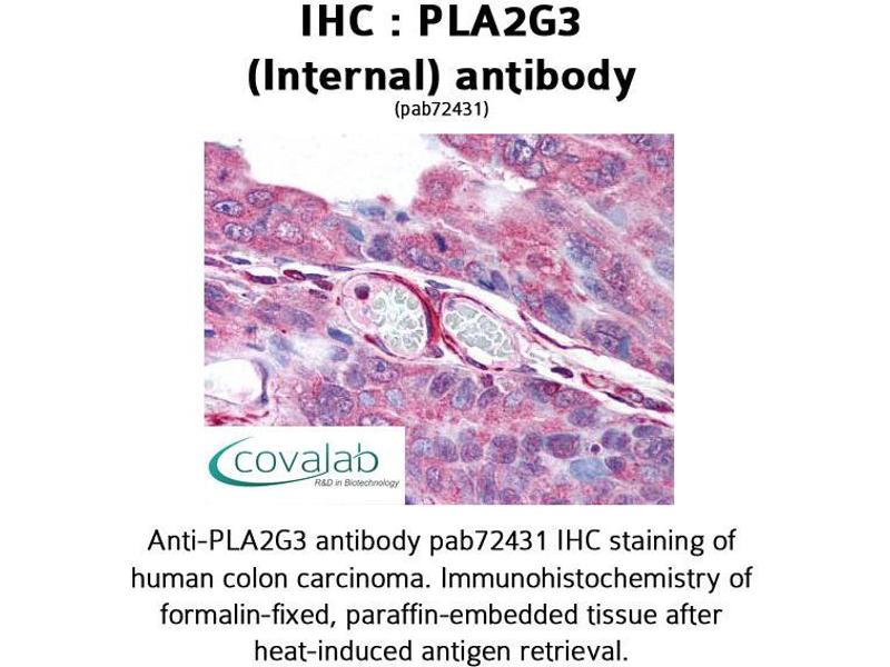 - Synthetic 12 amino acid peptide from internal region of human PLA2G3. Percent identity with other species by BLAST analysis: Human (100%), Gorilla (100%), Gibbon (100%), Monkey (100%), Marmoset (100%), Bovine (100%), Elephant (100%), Panda (100%)