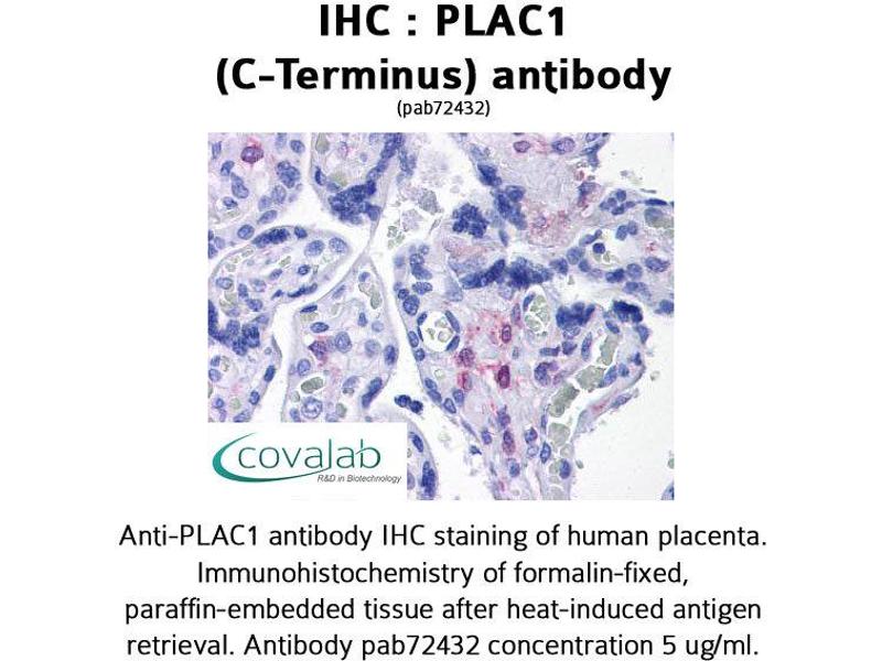 - PLAC1 antibody was raised against a 15 amino acid peptide near the carboxy terminus of human PLAC1.