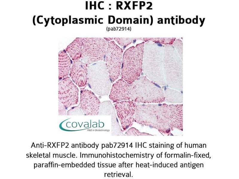 - Synthetic 14 amino acid peptide from 3rd cytoplasmic domain of human RXFP2. Percent identity with other species by BLAST analysis: Human (100%), Gorilla (100%), Gibbon (93%), Monkey (93%).