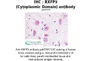 - Reacts with the cytoplasmic domain of human RXFP3
