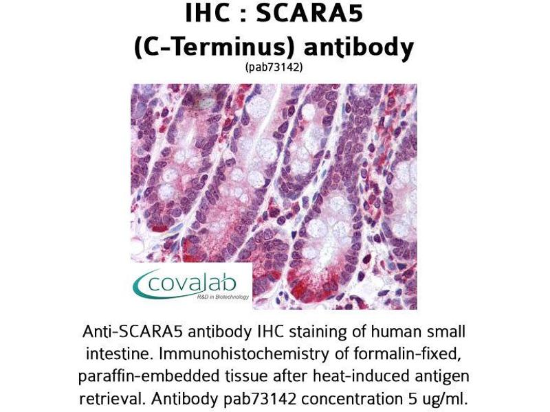 - Reacts with the C-terminus part of human SCARA5