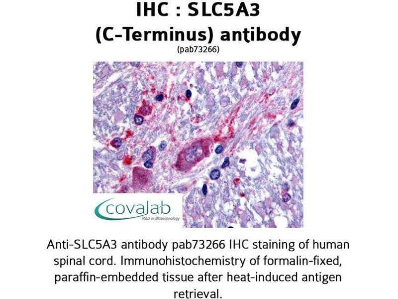 - Reacts with the C-terminus part of human SLC5A3