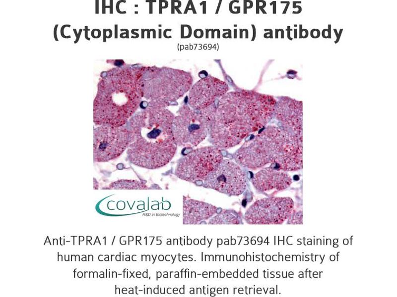 - Reacts with the cytoplasmic domain of human TPRA1 / GPR175