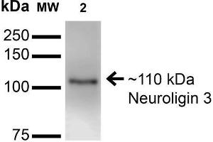 - Detects ~110 kDa. Does not cross-react with Neuroligin-1, -2, -4 or -4.