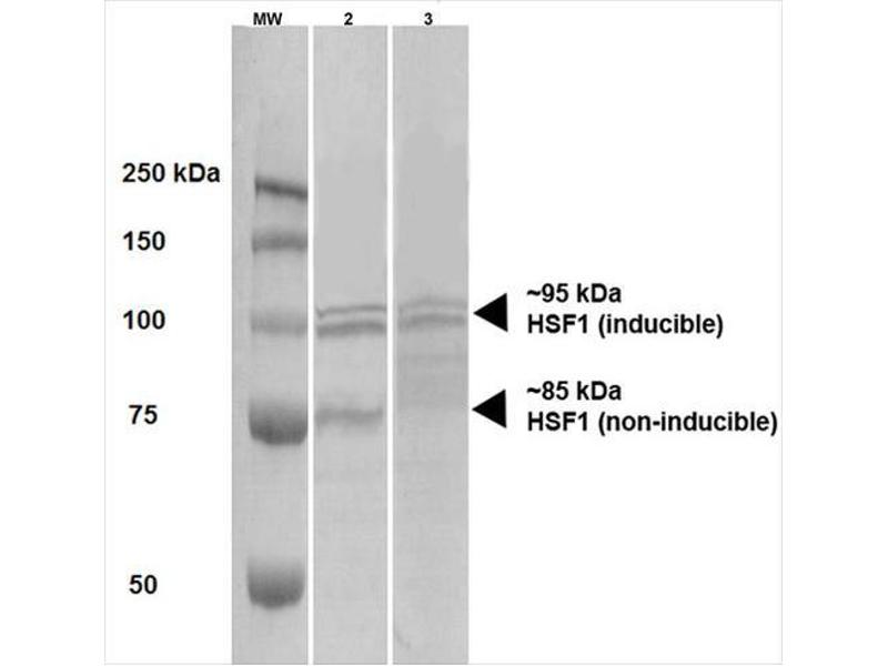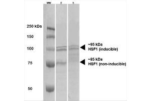 - Detects ~85 kDa (unstressed cell lysates) and ~95 kDa (heat shocked cell lysates).