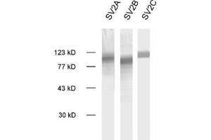 WB: SV2 aggregates after boiling, making it necessary to run SDS-PAGE only with non-boiled samples.