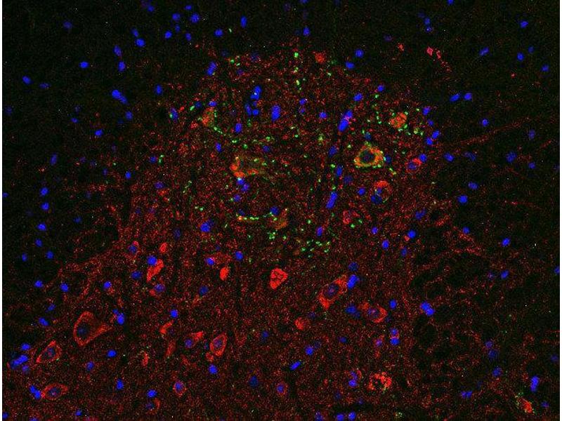 This antibody is less sensitive compared to the rabbit antibody. VAChT aggregates after boiling, making it necessary to run SDS-PAGE only with non-boiled samples.