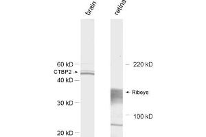 - This antibody recognizes CtBP 2 and ribeye (cat. no. 192 003).