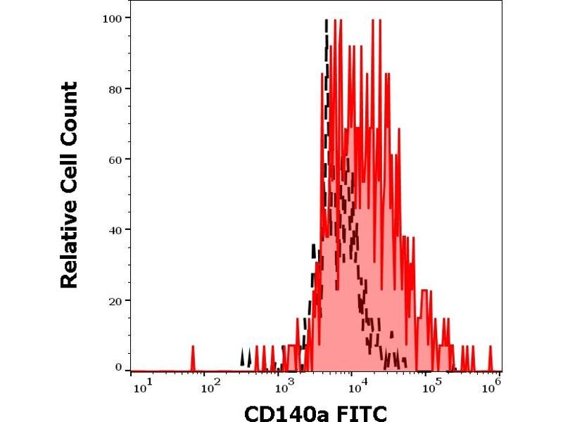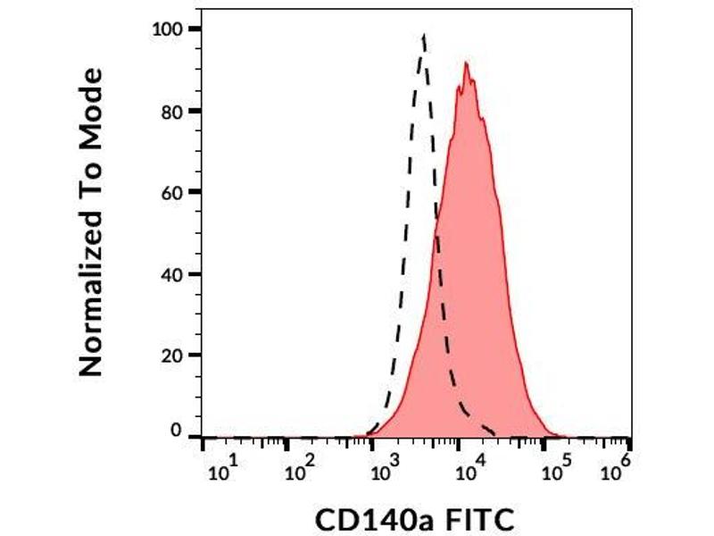 The FITC-conjugated Mouse Monoclonal anti-PDGFRA antibody (Clone 16A1) (ABIN1774734) specifically detects PDGFRA in FACS.
