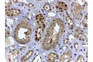 Immunohistochemistry: In paraffin embedded Human Kidney shows nuclear staining in some of the DCT. Recommended concentration, 4-6 μg/mL.