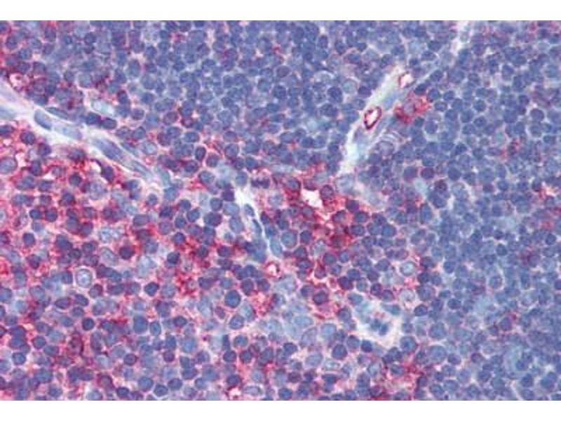 Usage: Immunohistochemistry: This antibody was validated for use in immunohistochemistry on a panel of 21 formalin-fixed, paraffin-embedded (FFPE) human tissues after heat induced antigen retrieval in pH 6.0 citrate buffer. After incubation with the primary antibody, slides were incubated with biotinylated secondary antibody, followed by alkaline phosphatase-streptavidin and chromogen. The stained slides were evaluated by a pathologist to confirm staining specificity. The optimal working concentration for this antibody was determined to be 5 μg/mL. Immunoprecipitation: Denatured only. 2 μg/mg protein lysate using Protein G. Western Blot: 1-2 μg/mL for 2 hours at RT. Positive control: Raji cells, placenta. -