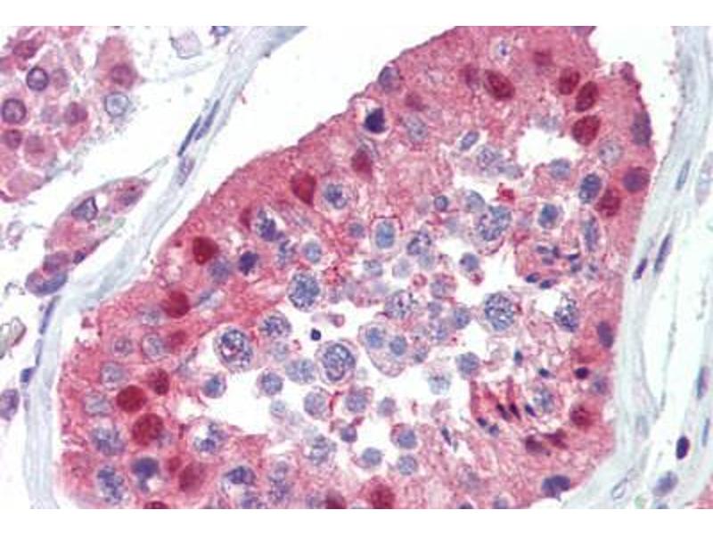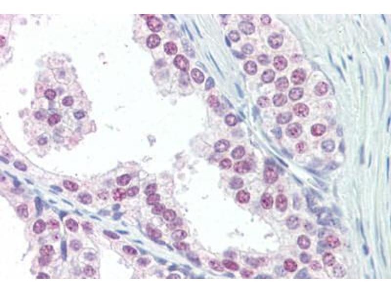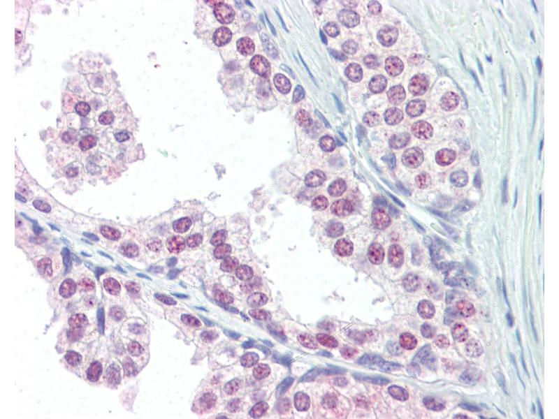 Usage: Immunohistochemistry: This antibody was validated for use in immunohistochemistry on a panel of 21 formalin-fixed, paraffin-embedded (FFPE) human tissues after heat induced antigen retrieval in pH 6.0 citrate buffer. After incubation with the primary antibody, slides were incubated with biotinylated secondary antibody, followed by alkaline phosphatase-streptavidin and chromogen. The stained slides were evaluated by a pathologist to confirm staining specificity. The optimal working concentration for this antibody was determined to be 10 μg/mL. -