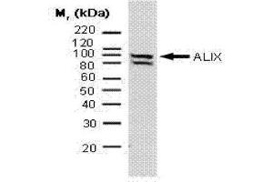 This antibody recognises apoptotic-linked-gene-product 2 (ALG-2) interacting protein X (ALIX), a conserved adaptor protein which is ubiquitously expressed.