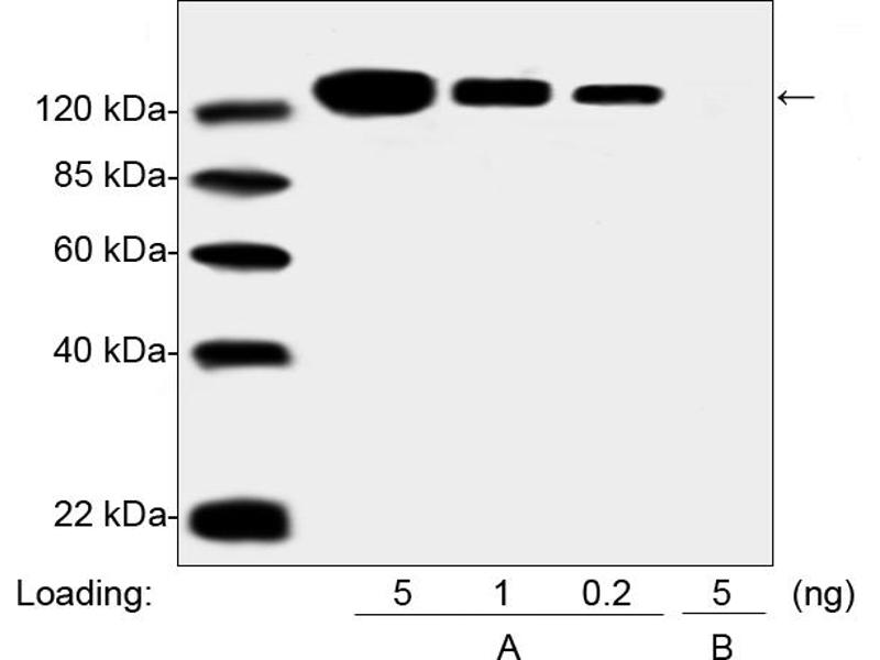 Reconstitute the lyophilized antibody with deionized water (or equivalent) to a final antibody concentration of 0.5 mg/mL. For long-term storage, we suggest adding glycerol to 50 % to a reconstituted antibody.