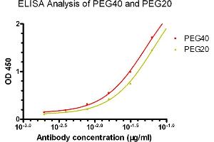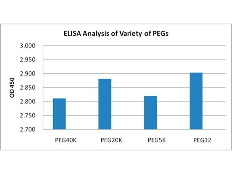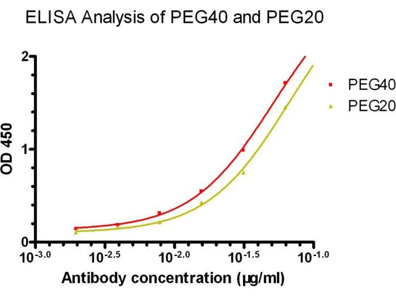 The PEG Antibody [Biotin], mAb, Mouse detects PEG backbone. The product can detect the variety of PEGs such as PEG40K, PEG20K, PEG5K, PEG12, PEGylated drugs and PEG conjugates.