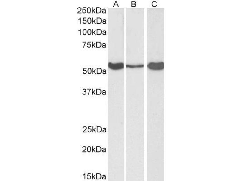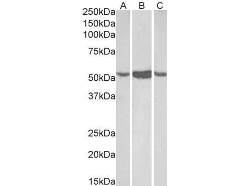 Western Blot: Approx 55 kDa band observed in Human, Mouse and Rat Liver lysates (calculated MW of 54.9 kDa according to NP_000680.2). Recommended concentration: 0.1-0.3 μg/mL. Primary incubation was 1 hour.