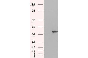 Western Blot: Approx 38 kDa band observed lysates of cell line Jurkat (calculated MW of 37.9 kDa according to NP_004801.1). In transfected HEK293 transiently expressing GRAP2 a band of approx. 40 kDa is observed. This band is not observed in the non-transfe