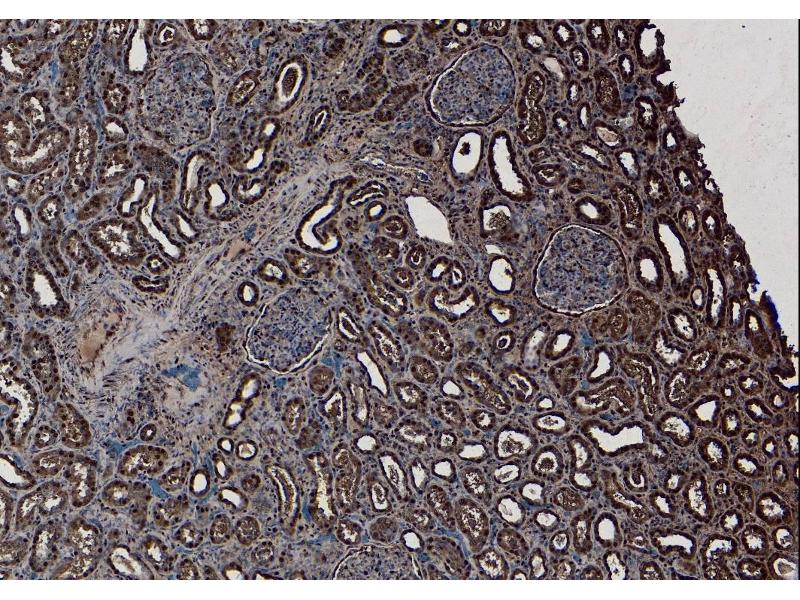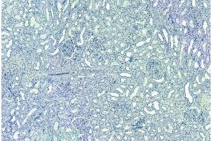 Immunohistochemistry: Paraffin embedded Human Kidney. Recommended concentration: 7 μg/mL.
