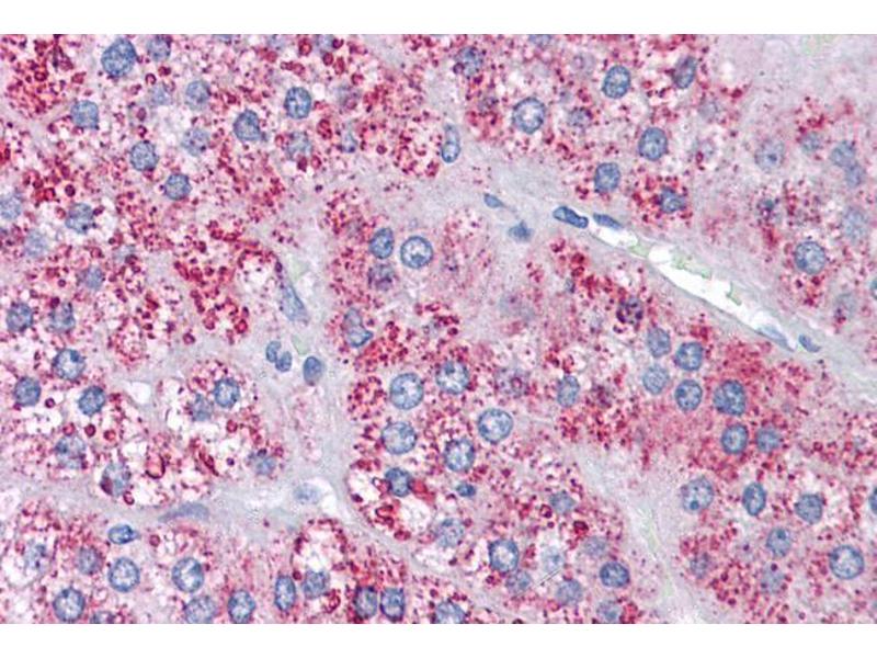 Immunohistochemistry: Paraffin embedded Human Testis and Adrenal Gland. Recommended concentration: 3.75 μg/mL.