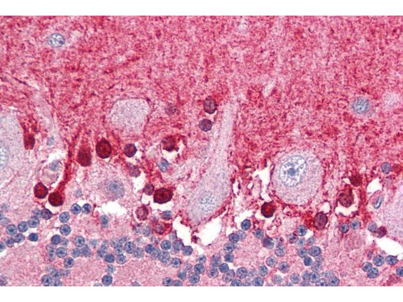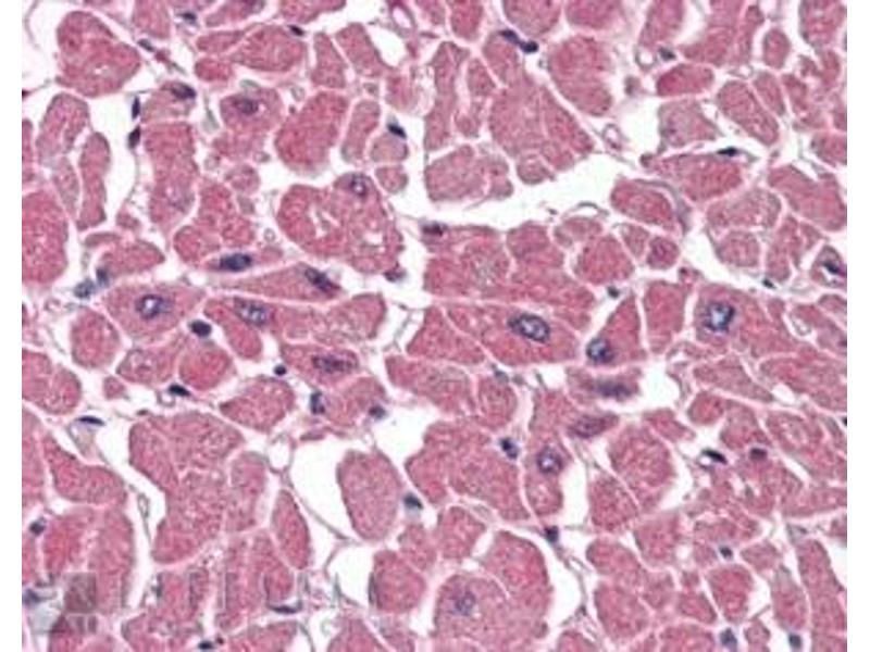 Immunohistochemistry: Paraffin embedded Human Heart and Brain (Cerebellum). Recommended concentration: 3.75 μg/mL.