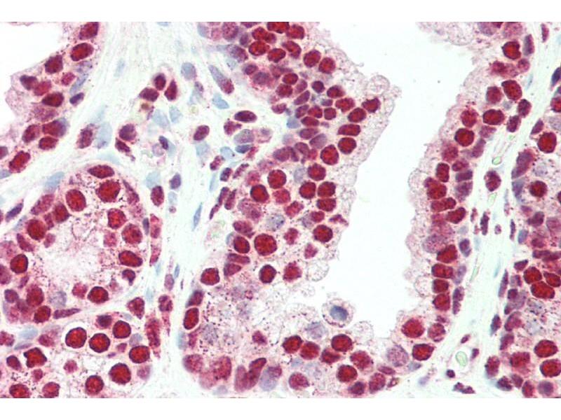 Immunohistochemistry: Paraffin embedded Human Prostate. Recommended concentration: 5 μg/mL.