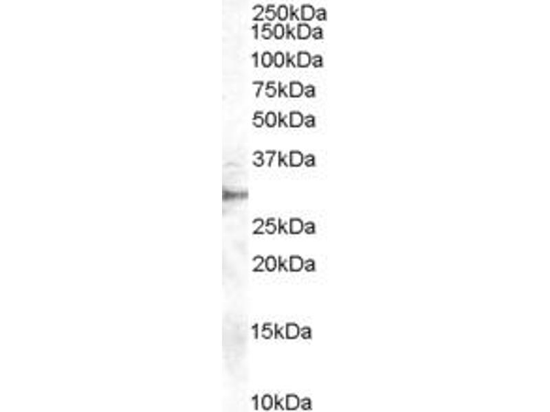 Western Blot: Approx 28 kDa band observed in Human Lung lysates (calculated MW of 29.6 kDa according to NP_039268.1). Recommended concentration: 0.1-0.3 μg/mL. Primary incubation was 1 hour. Preliminary testing was unsuccessful on Mouse and Rat for this pa