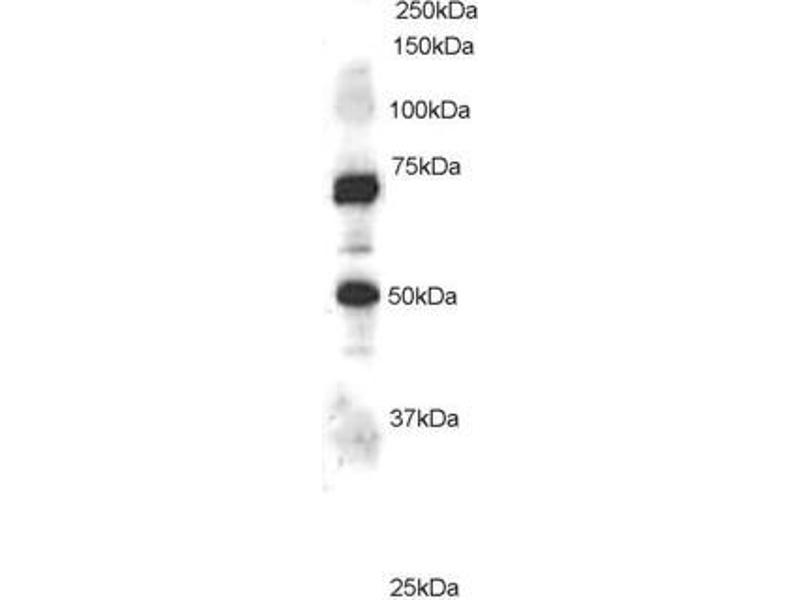 Western Blot: Approx 83 kDa band observed in Human Brain (Frontal Cortex) lysates, in Mouse and Rat Brain lysates and in lysates of cell line Jurkat (calculated MW of 83.8 kDa according to NP_055615.8). Recommended concentration: 0.1-0.3 μg/mL. Primary inc