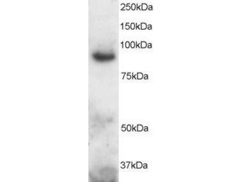 Western Blot: Approx 100 kDa band observed in Human Bone Marrow and Peripheral Blood Mononucleocytes lysates (calculated MW of 88.8 kDa according to NP_001100.3). Recommended concentration: 1-3 μg/mL.