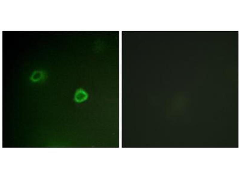 The antiserum was produced against synthesized phosphopeptide derived from human P90RSK around the phosphorylation site of threonine 573 (L-M-TP-P-C).