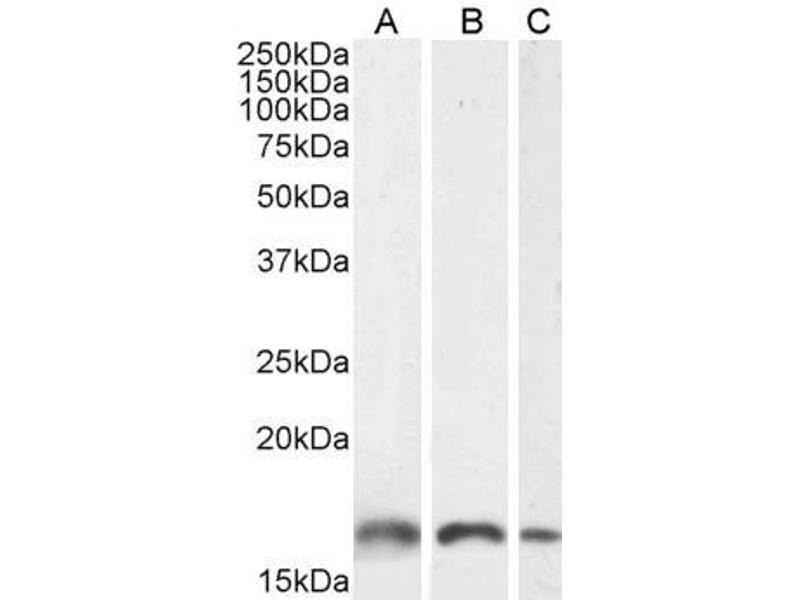 Western Blot: Approx. 16-17 kDa band observed in Human Frontal Cortex and in Mouse and Rat Brain lysates (calculated MW of 16.7 kDa according to Human NP_001614.3, 16.9 kDa according to Mouse NP_062340.1 and 16.8 kDa according to Rat NP_058892.1). Recommende