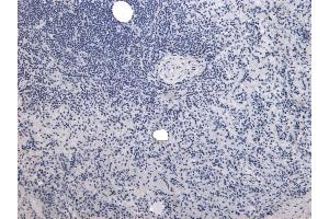 Immunohistochemistry: Paraffin embedded Human Spleen. Recommended concentration: 6-8 μg/mL.
