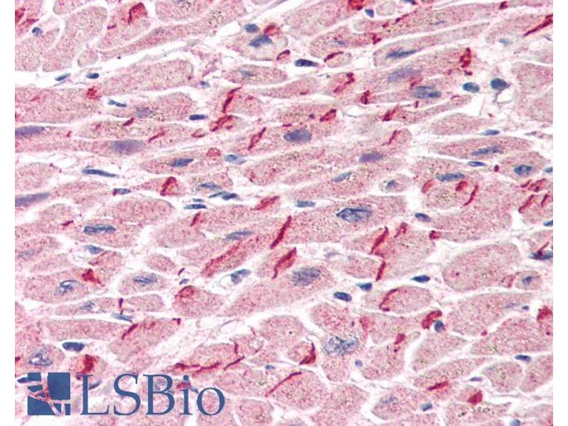 Immunohistochemistry: Paraffin embedded Human Heart. Recommended concentration: 5 μg/mL.