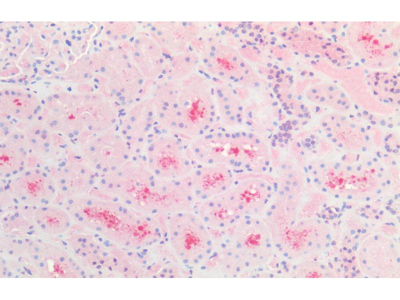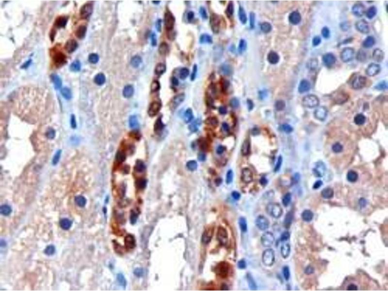 Immunohistochemistry: Paraffin embedded Human Kidney. Recommended concentration: 5 μg/mL.